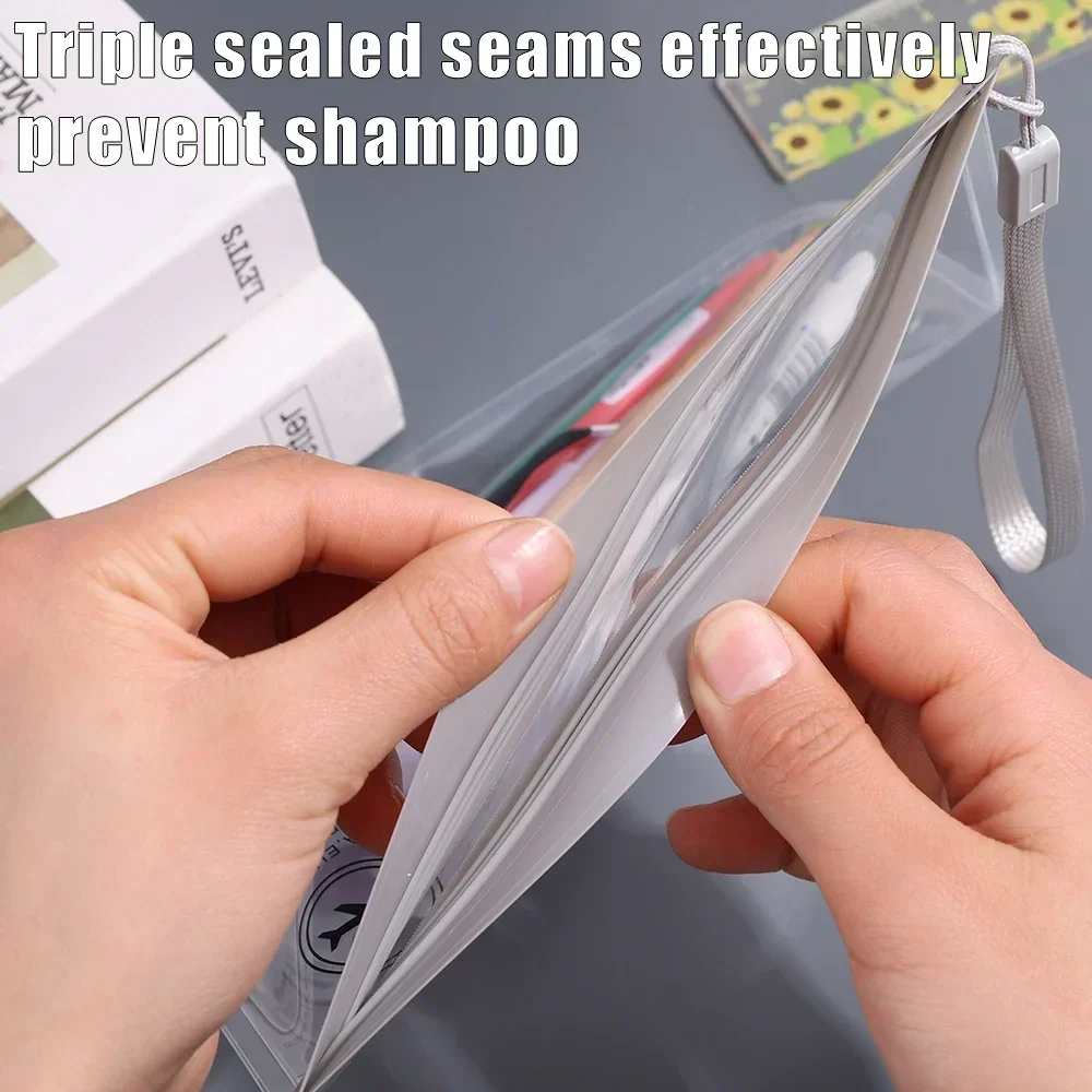 1pc Transparent toilet bag, portable travel essentials, flight makeup liquid leak proof, resealable EVA cosmetic bag